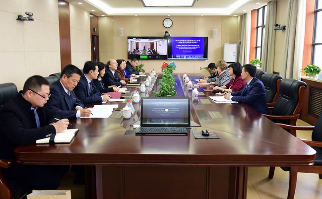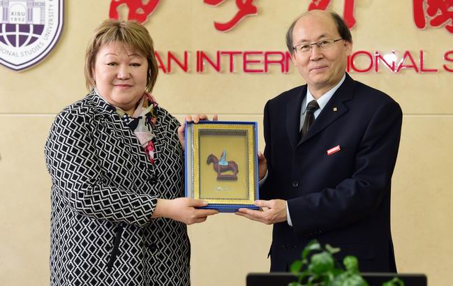 王军哲校长首先对阿赛木古丽副校长一行的来访表示热烈欢迎并向来宾们详细介绍了我校的历史沿革、多语种的专业设置及师生概况。随后,他回顾了去年6月我校代表团对哈萨克斯坦的访问以及在欧亚大学成功举办的孔子学院理事会。王校长说到,我校与欧亚大学共建的孔子学院经过10年的发展,在各方面都取得了长足的进步,合作果实惠及两校师生。孔子学院的建立和发展始终秉承增进中哈两国友好关系,加深哈萨克斯坦人民对中华传统文化了解、培养掌握两国语言的复合型人才的理念,受到国内和国际社会的广泛好评。随着我国“一带一路”倡议的提出,更为两校的合作提供了新的机遇。王校长表示,去年我校设立了哈萨克斯坦研究中心并开设了哈萨克语专业,邀请了哈萨克斯坦驻华大使沙赫拉特·努雷舍夫为中心揭牌。哈萨克斯坦研究中心的建立以及哈萨克语专业的设立,有利于在全球化背景下进一步加强我国对哈萨克斯坦政治、经济、历史、社会和文化等方面的全面了解,培养更多服务于中哈两国交流事业的双语复合型人才,增进中哈两国人民互信,为双方合作发展注入新的活力。王校长强调,今后我校与欧亚大学需要以共建孔子学院为基础,继续通力合作、互惠互利,加大两校间师资互派、学生互换的数量和规模,充分利用现有平台开展更多宽领域、深层次的交流。最后,王校长表示他热切盼望今年4月即将在我校举办的孔子学院理事会以及欧亚大学校长瑟德科夫的到访,并希望通过瑟德科夫校长的来访将两校交流合作协议内容进一步深化、细化,提升双方合作的宽度和广度。