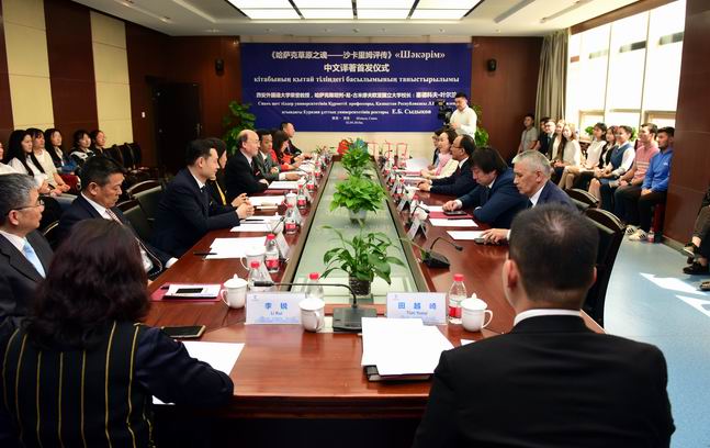 2018年4月2日下午,哈萨克斯坦欧亚大学校长塞德科夫·叶尔兰的新书《哈萨克草原之魂——沙卡里姆评传》中文译著首发仪式在我校长安校区举行。哈萨克斯坦欧亚大学副校长萨姆入列克·巴乌别克、社会科学系主任卡士根巴依·白祖曼、孔子学院哈方院长科莎诺娃·萨乌烈,我校校长王军哲、副校长李雪茹出席活动。国际合作与交流处、汉学院、俄语学院等相关部门负责人,我校哈萨克斯坦语师生代表及哈萨克斯坦留学生代表一同参加了首发仪式。仪式由国际合作与交流处处长吴耀武主持。