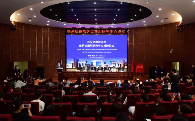 2017年9月20日上午,我校哈萨克斯坦研究中心揭牌仪式在长安校区成功举行。哈萨克斯坦驻华大使沙赫拉特·努雷舍夫、哈萨克斯坦驻华大使馆教育参赞凯拉特·阿布德拉赫曼诺夫、哈萨克斯坦古米廖夫国立欧亚大学孔子学院院长毕比哈蒂莎·阿布扎帕洛娃、陕西省人民政府外事办公室副主任宫贵俊、陕西省教育厅国际合作与交流处处长孙建宁,我校校长王军哲、副校长姜亚军、相关职能部门负责人及俄语学院师生代表参加了揭牌仪式。揭牌仪式由姜副校长主持。