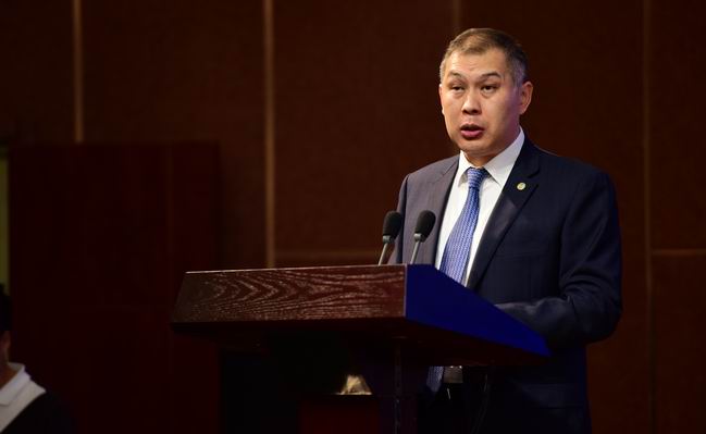 努雷舍夫大使首先在仪式上致辞。他非常感谢王校长和姜副校长的热情邀请。对于我校在加强哈中人文合作方面做出的重大贡献表示肯定,对于我校哈萨克斯坦研究中心的成立表示由衷的欣慰。他提到,今年是哈中建交25周年,25年来哈中建立了战略伙伴关系的合作典范。目前两国关系发展良好,两国之间的贸易不断增长。随着“一带一路”倡议的提出,西安作为丝绸之路经济带的重要的十字路口和主要的物流通道,在中哈文化经济交流中起到重要作用。2007年起,西外和国立欧亚大学在阿斯塔纳设立了孔子学院并开始合作,哈萨克斯坦中心的设立使中哈关系更进一步。最后,努雷舍夫大使呼吁哈中两国师生为共建哈中两国战略合作伙伴关系的发展继续努力。