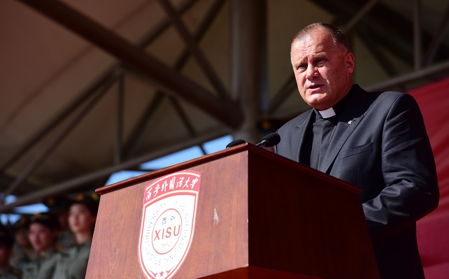 2017年9月11日,波兰卢布林天主教大学校长安东尼·德宾斯基,波兰驻华大使馆教育处负责人娜塔莉娅,韩国驻西安总领事馆总领事李康国,泰国驻西安总领事馆总领事安丽长·谭娜功等多国外宾集中来访我校,并参加了我校2017级新生开学典礼。